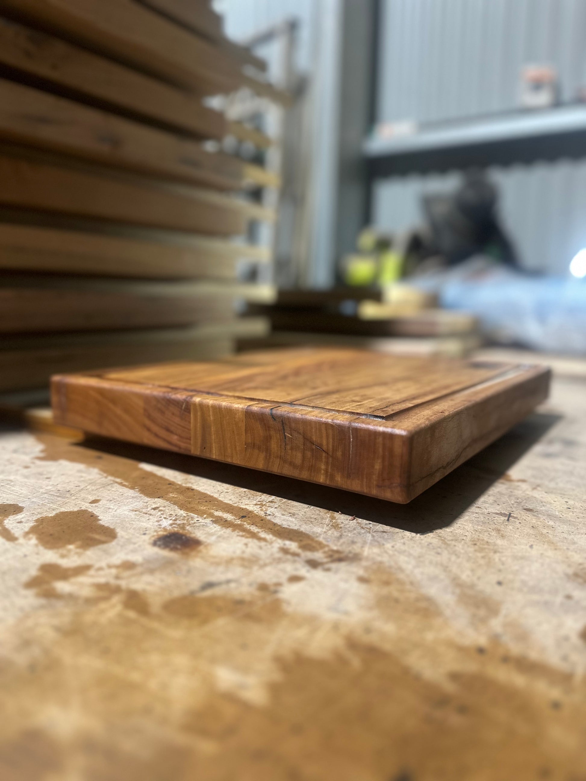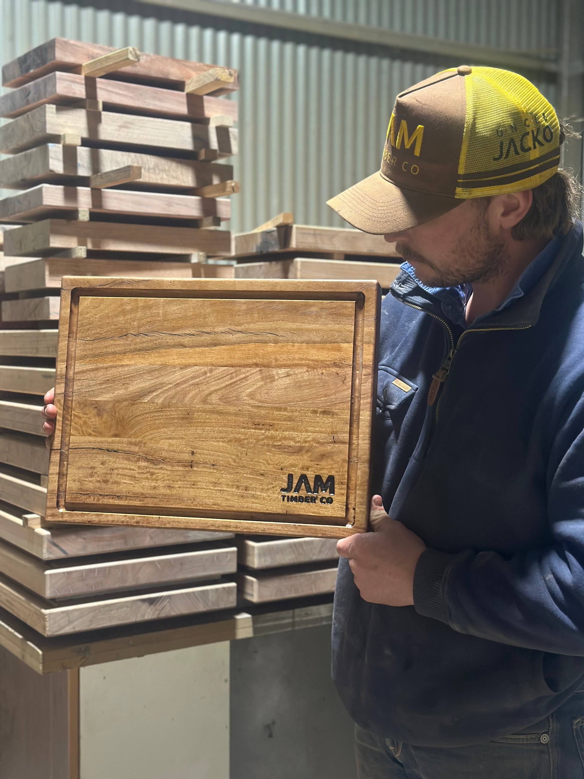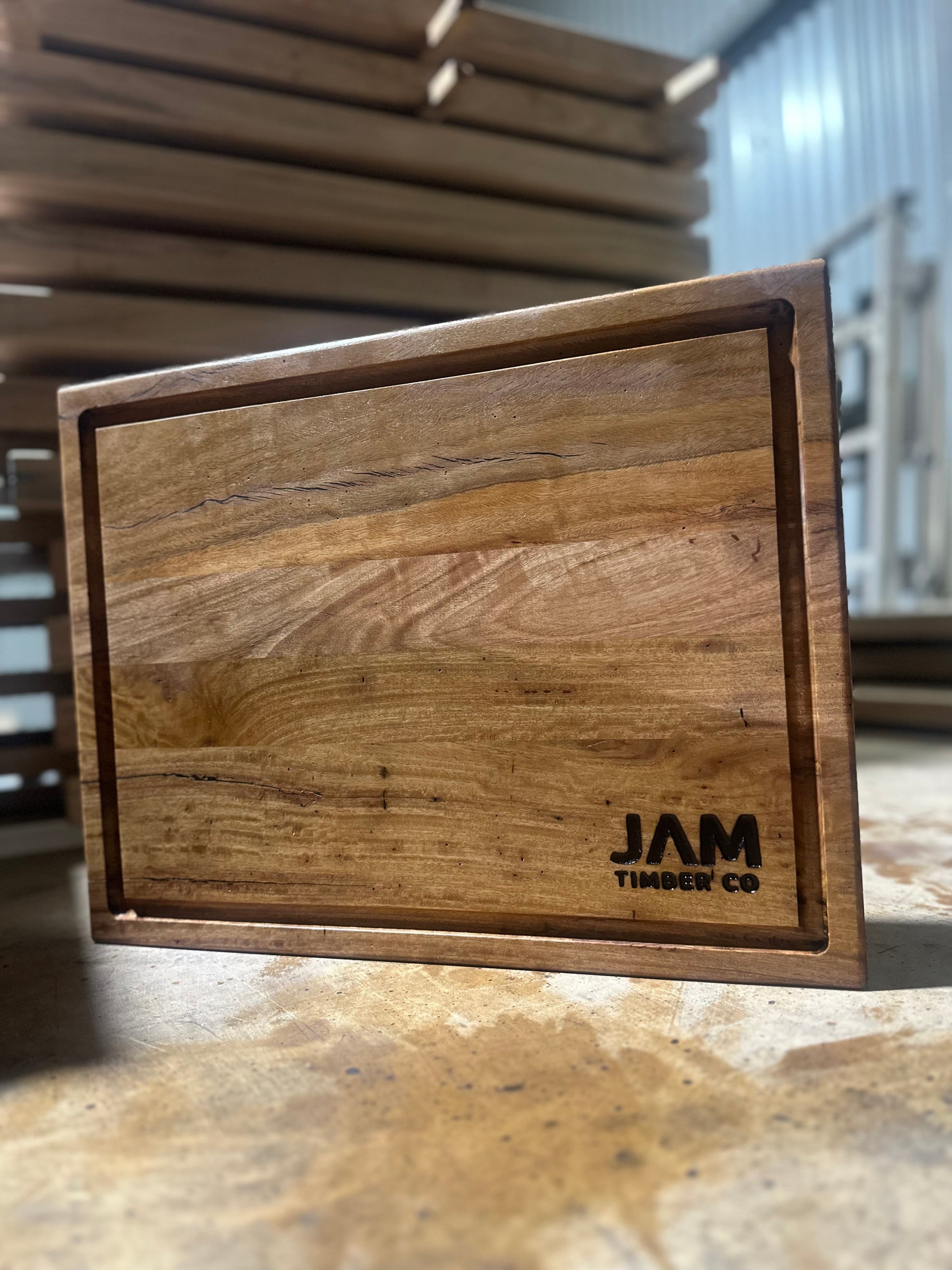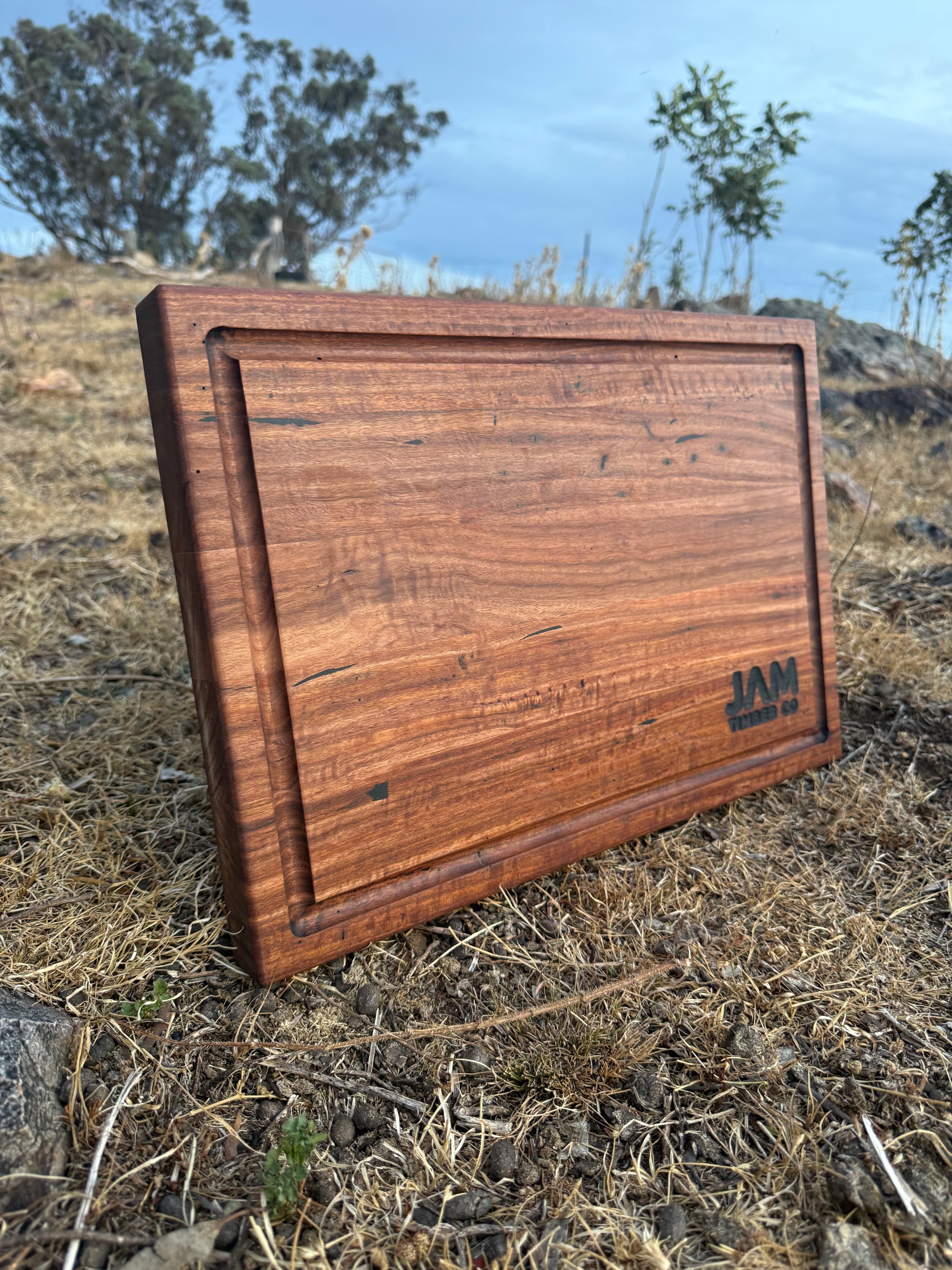 The Assergi Chopping Board is Australian made with a mixture of Timbers including Stringy-Bark, Redbox and GreyBox. The timber for these chopping boards come from trees that are on the JAM Timber Co property, they are cut down, slabbed with a mill, kiln dried and dressed all in the one place so you know that your chopping board is 100% grown, cut, dried and made in the one spot.